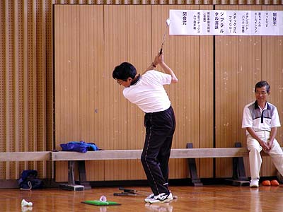 競技数も人数も少なかったですが、生徒の二人のハツラツとした動きはすばらしかったです。最後の「松村杯争奪!祝島スナックゴルフ選手権」は列席者みんなで参加して楽しみました。