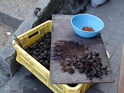 7月1日がウニの口開けでした。1日〜4日までが大潮で、島のオバちゃんたちは、ウニ採りとシゴで忙しそうです。ウニのシゴは大変ですが、採れたての新鮮なウニは甘くて旨いですよ。