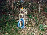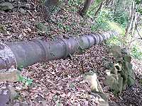 | 祝島日記(9) 「山の土管」 祝島の山頂から北西の尾根道を歩いて、北野に下りようと、少しずつ道を延ばしてい ます。 それらしい道を見つけて下りてみると、違ったところに下りてしまいました。 北野のセイリ(共同管理のため池)まで土管で水を引く、取水口のある所に下りたのです。 この取水口からため池まで、1qくらいの距離に、土管や溝が作られ、水を引いているのです。 土管は石垣に支えられています。こうして引いて貯められた水によって、北野の田ん ぼの稲が作られ、祝島を養ってくれたわけです。 帰り道に山本さんに聞くと、取水口のあるところは「蜂の尾」と言う所のようです。 目標とする道はまだ見つかりませんが、違った発見がありました。 ![]() <2001年4月14日 木村 力> |