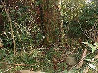 | 祝島日記(4) 「三角点」 国土地理院の地図では、祝島の一番高い処は357.4mで長見山というところにあるようです。 今日行ってみました。 誰かが、通れるように道を作ってくれていました。 三角点の標識があり、すぐ側に幹の回り2mあまりのタブの木が立っていました。 近くには幹回り2mを越えるくらいのイタジイの木が2〜3本ありました。 タブの木とイタジイの木は常緑樹で、祝島では大きくなる木の代表的な木です。 台風による風のためでしょう、かなり大きな木が数本倒れていました。