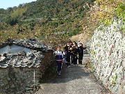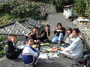 | 祝島日記(26) 「遠足」 12月1日ハエ道を遠足に行きました。 子ども達が、家庭科の授業で作った弁当で、先生方を招待しての遠足でした。 いい天気でした。 祝島を訪れた人も2人、山道で出合いました。 下の磯を歩いているリュックを背負った姿も見かけました。 秀人君の情報では、新聞記者さんも島に来ているとのことでした。