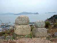 | 祝島日記(30) 「ゴーリン」 小学校の上の方の畑にゴーリンをおいているのを見かけました。 あるというのは聞いていたのですが、たまたま通りかかって気づきました。 河森さんの畑の端に置いてありました。 昔の墓だと言うことです。 「寺の門」の少し下で、「寺の門」と関係があるのでしょうか。