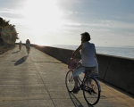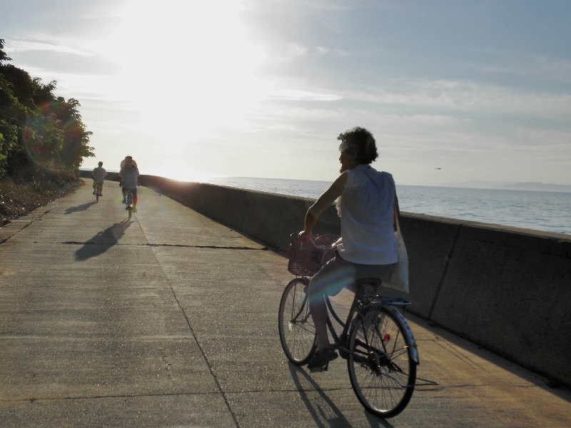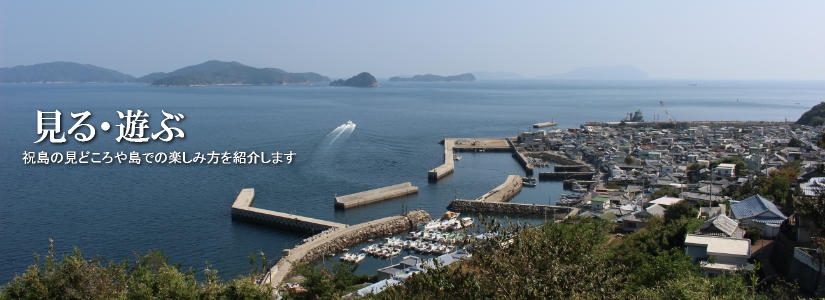 島の裏側にあたる三浦湾には自転車で30分ほど。端正な形の小祝島や、遠く九州の国東半島、姫島などを望むことができます。「不老長寿の実」と言われるコッコーの木の自生地でもあり、県指定の天然記念物「ケグワの巨樹」、ブタの放牧の氏本農園などがあります。三浦湾から眺める夕日はとてもきれいです。