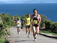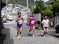 | 祝島出身の吉村さん夫婦の選手宣誓 | 急坂を駆け上がる | 室積中学校、陸上部の皆さん |