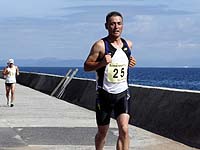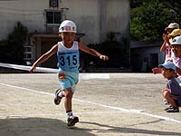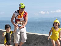 | 海岸を颯爽と走るランナー | 大健闘で2km2位のミサトちゃん | 最年少4歳のコウセイくんゴール! |