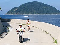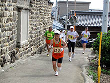 | 祝島のエベス3姉弟と航聖クンの選手宣誓 | 練塀の道を走る | 笑顔でゴール |