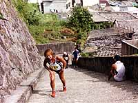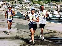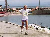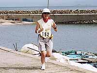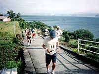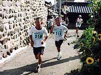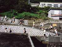 | 祝島の子供たちもガンバル | 最後の階段がキツイ! | 13kmトップのゴール |