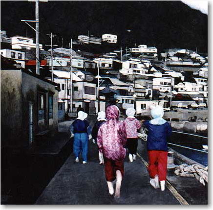 祝島HPのみなさん こんにちは。 この度わたしは 二千年の神舞に併せて 「少年の島」という゛架空の島゛を ゛絵゛という伝達手段を用いて 祝島に作ります。 つまり 周囲12キロの祝島のなかに さらにちいさな孤島を作るという 試みです。 是非 「少年の島」へ上陸して下さい。 乗り遅れるな。
