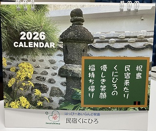 民宿くにひろ特製の2026年版卓上カレンダーです。